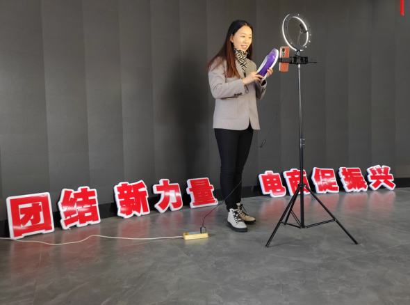 “我手里拿的这款千层底布鞋呢,是我们北庄村,以及附近村的婶子大娘手工制作的。这不仅仅是可以穿的鞋子,更是我们西柏坡精神的象征,是我们家家户户团结、和谐的象征,是红色基因的代代传承......”记者走进平山县团结北庄手工坊,西柏坡镇北庄村电商助农惠农展销基地经理王亚梅正在进行电商直播。
