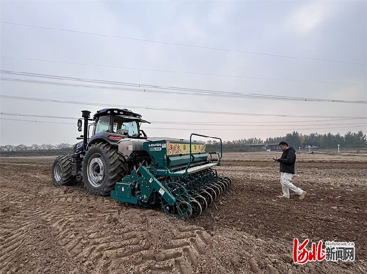 10月24日下午2时许,在保定市涞水县义安镇下庄村的农田里,一台无人驾驶的拖拉机正自主行进。伴随着机器的轰鸣声,田地被整齐划一地翻开,麦种被精准地撒入土中,翻起的土浪犹如用尺子量过一般笔直。