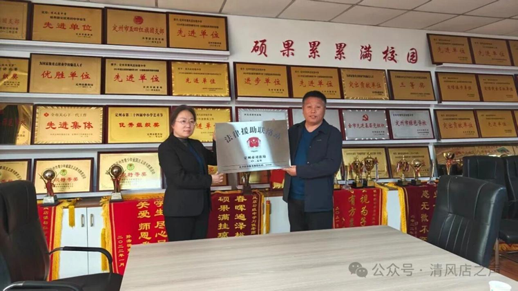 一场庄重的宣誓仪式将活动氛围推向高潮。全体师生在宣讲人引领下,高举手臂、齐声宣读:“我承诺,坚守正义,抵制欺凌;拥抱梦想,创造精彩人生!”整齐响亮的誓言回荡在校园。定州市司法局正式将清风店镇初级中学确立为“法律援助联络站”并举行授牌仪式,为全校师生搭建了更便捷的法律援助通道,为法治校园建设增添了坚实保障。