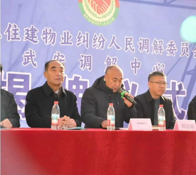 仪式上,邯郸调解中心李政朝主任强调在县级设立住建物业纠纷调解中心的重要意义,武安调解中心是打通矛盾化解“最后一公里”的关键载体,要求调解中心坚守专业底线,强化机制建设,切实发挥好纠纷过滤、源头化解的重要作用。随后,武安市调解中心负责人简单介绍了中心筹备情况及工作规划,承诺将以规范化、专业化服务回应群众诉求。