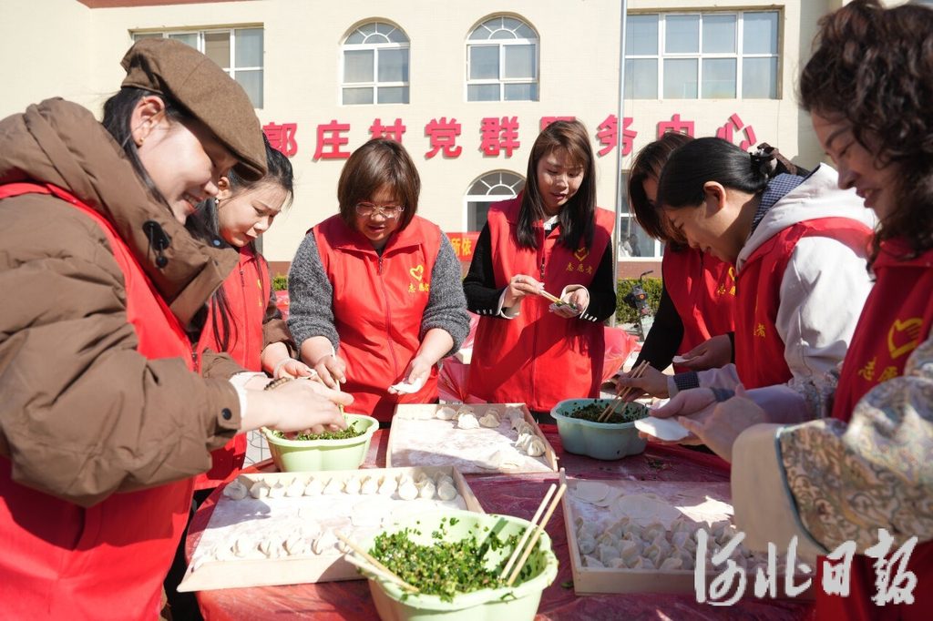 3月16日,在邢台市任泽区象郭庄村“孝老敬亲·和美乡村”饺子宴上,青年志愿者为老人包饺子。河北日报记者赵永辉摄