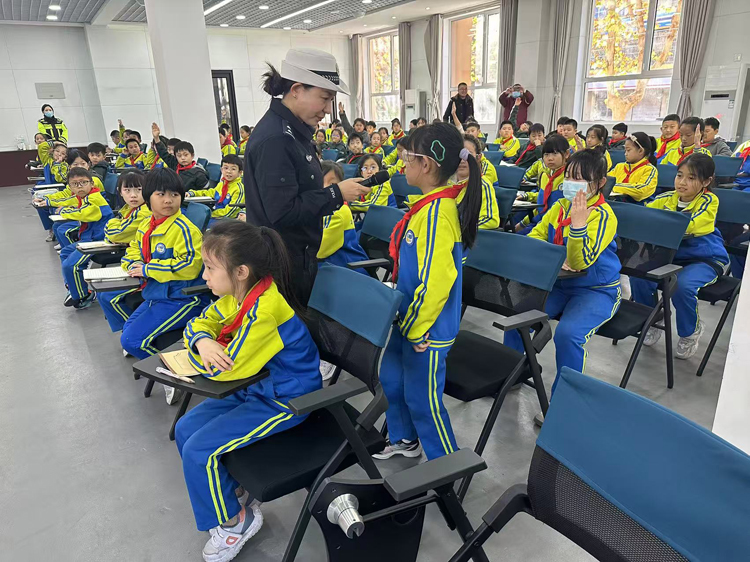 现场,宣传交警还通过发放交通安全宣传彩页、展示交通标志展板等互动环节,让同学们直观感受交通规则的重要性,主动参与到交通安全学习中来。同学们积极举手回答问题、踊跃参与互动,现场气氛热烈。