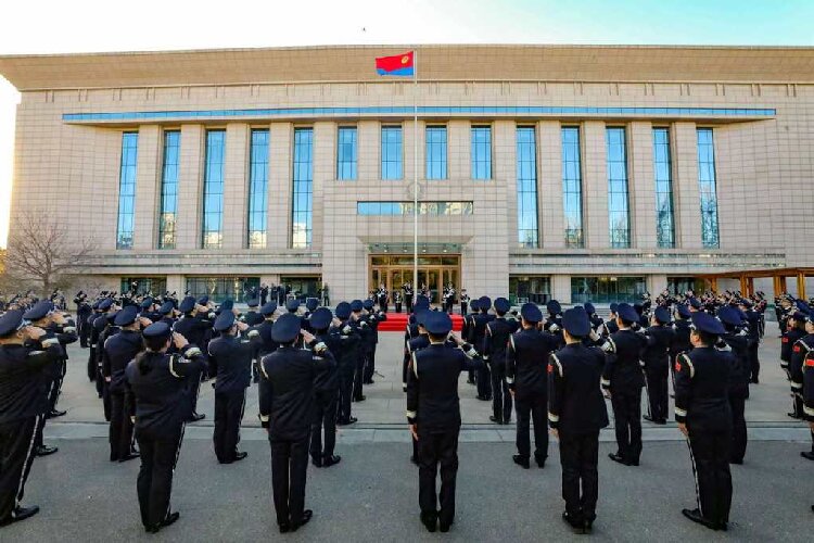 图为省公安厅机关隆重举行升警旗仪式。徐超摄