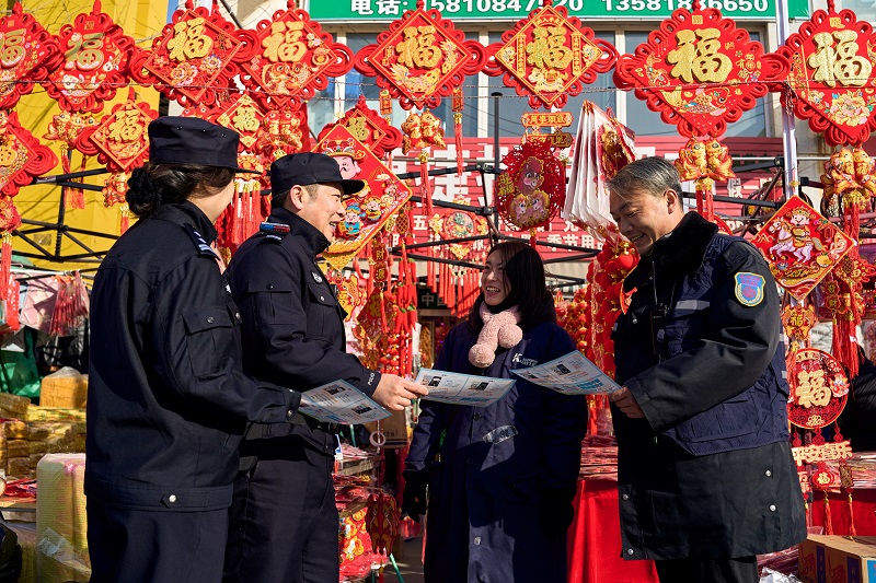 日前,三河市公安局行宫东派出所民警辅警走进辖区集市,通过面对面宣讲、发放宣传材料等形式,为往来群众及商户宣传防范电信网络诈骗及消防安全等知识,切实提高他们的法治意识与安全意识。 张晓娜摄