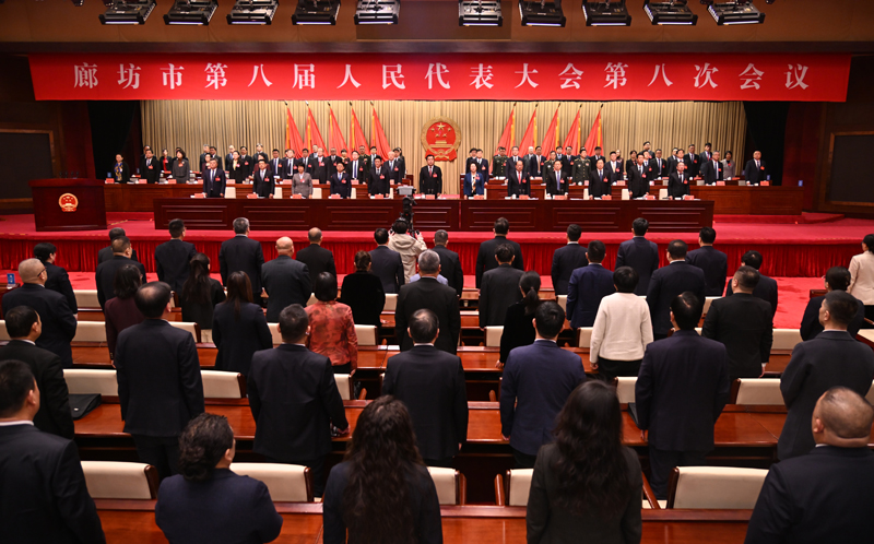 2月7日上午,廊坊市第八届人民代表大会第八次会议圆满完成各项议程后,在雄壮的国歌声中胜利闭幕。