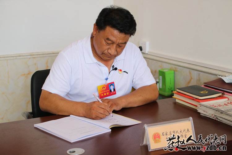 在石家庄市人大代表白建栋工作室,人大代表白建栋填写《代表接待选民登记表》。苏秋菊 摄