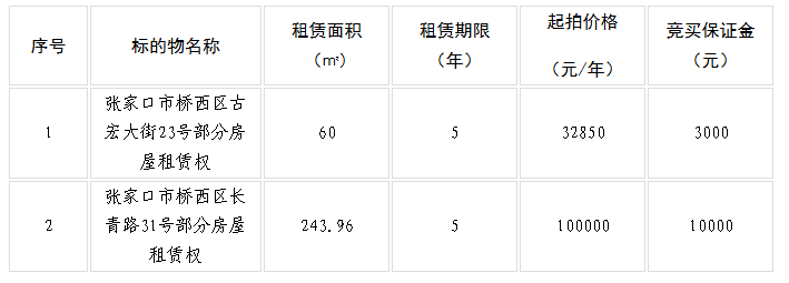 受委托,我公司定于2025年12月12日10时通过冀政政务服务拍卖平台(http://www.jizheng.org.cn/TPBidder-cs/tbrweb/index)以网络拍卖方式对张家口市桥西区古宏大街23号及长青路31号房屋租赁权进行公开拍卖。