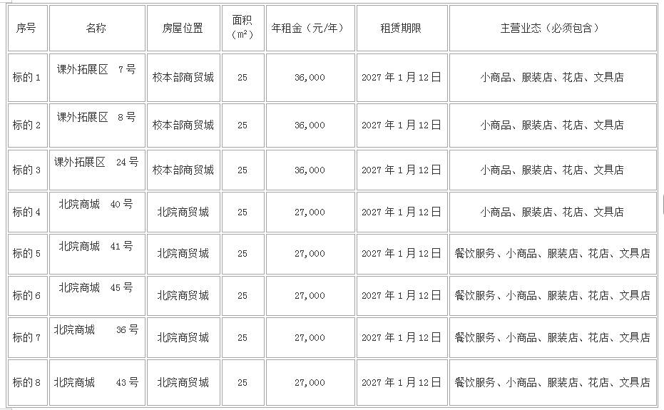 8.装修改造方案需经学校批准,费用由中标单位自行承担,不得破坏房屋结构,租赁期满后不得破坏或拆除。