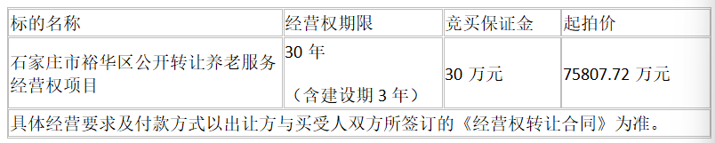 定于2025年12月22日下午15:00时在石家庄市公共资源交易平台(http://www.sjzsggzyjyzx.org.cn/)对“石家庄市裕华区公开转让养老服务经营权”进行公开拍卖(拍卖方式为网络电子竞价)。现将有关情况公告如下: