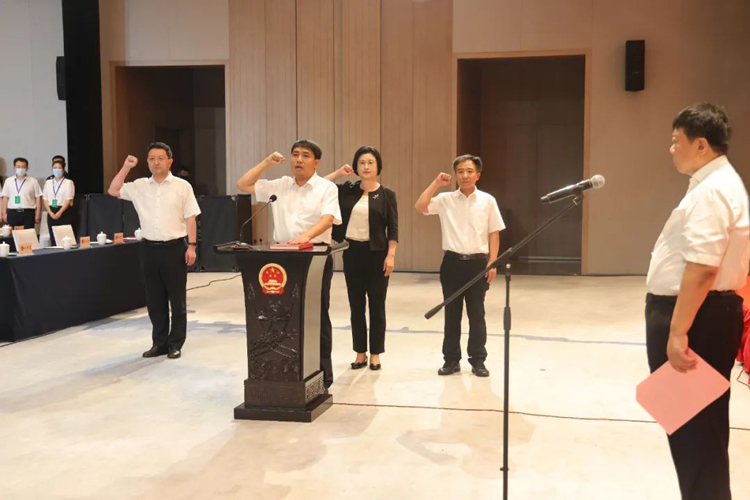 市第十五届人大常委会第九次会议结束后举行了宪法宣誓仪式。李雪荣主持仪式。